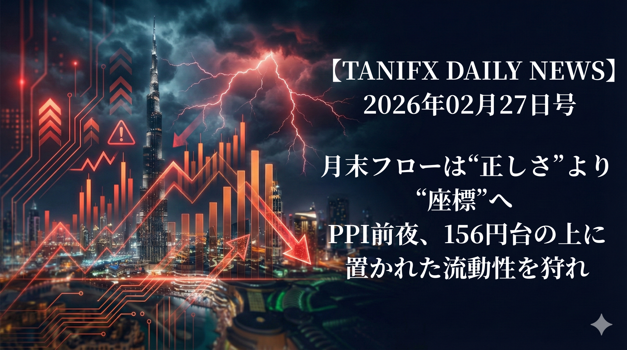 月末フローは“正しさ”より“座標”へ ── PPI前夜、156円台の上に置かれた流動性を狩れ